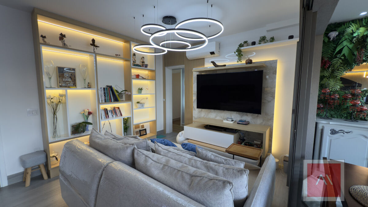 - Ambientes integrados entre sala de estar, cozinha e varanda gourmet, criando uma atmosfera acolhedora e familiar