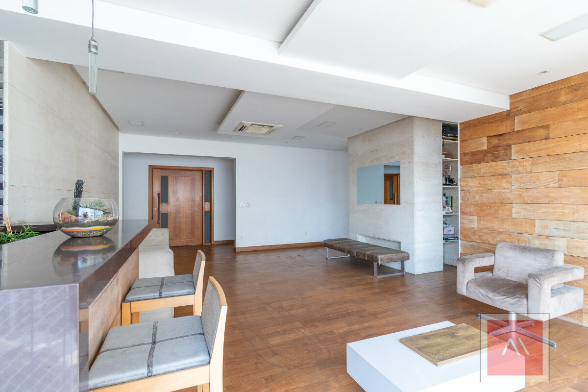 Com 4 dormitórios, 3 suítes amplas e 1 quarto para escritório, 4 vagas e 2 elevadores privativos, a unidade oferece hall exclusivo, janelas piso-teto, sacada com vista para a cidade e ambientes climatizados por ar-condicionado central. Os acabamentos de alto padrão incluem piso de madeira, churrasqueira, espaço gourmet e infraestrutura completa para ar-condicionado.